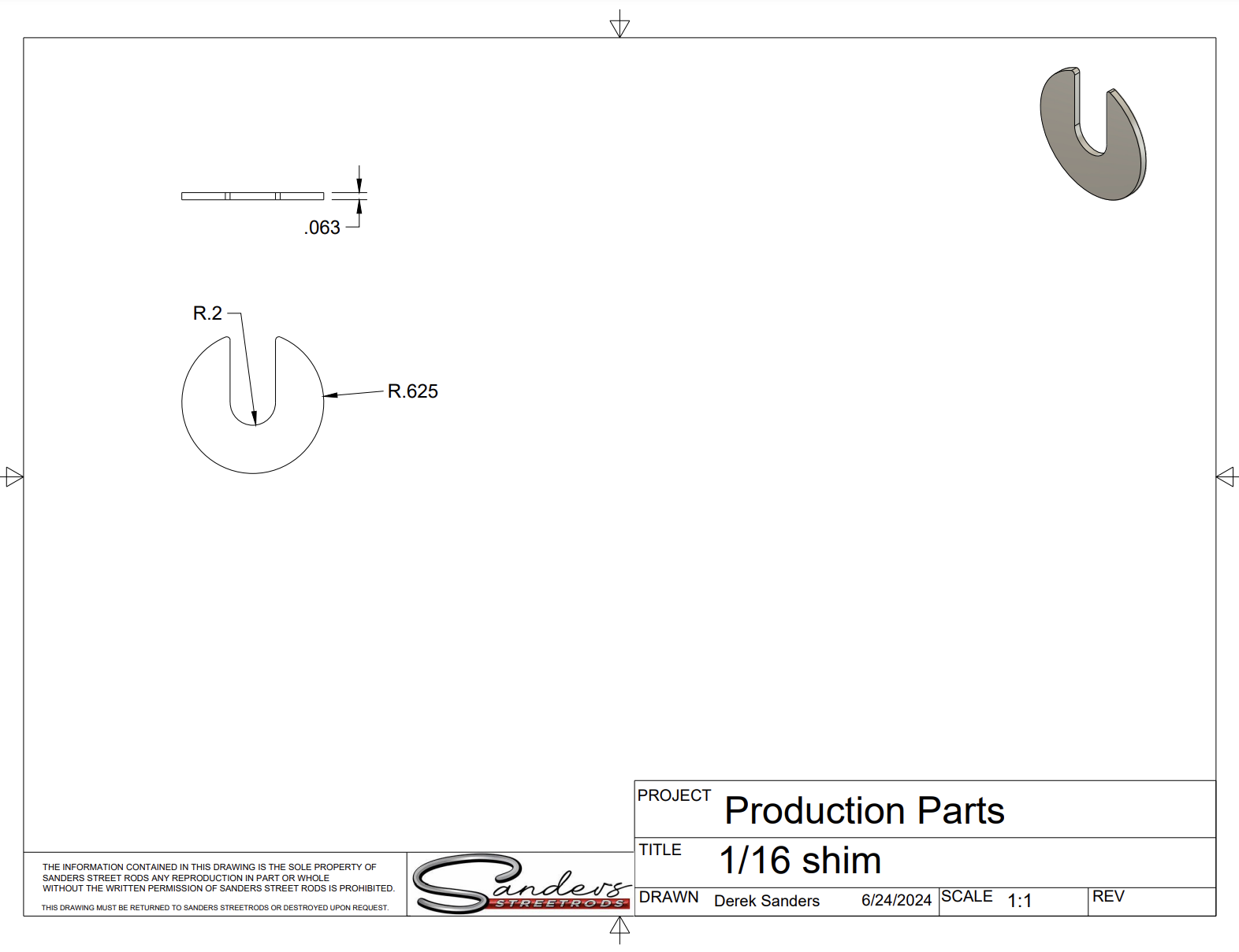 - 1/16" Aluminum shim made from high quality 6061 Aluminum.