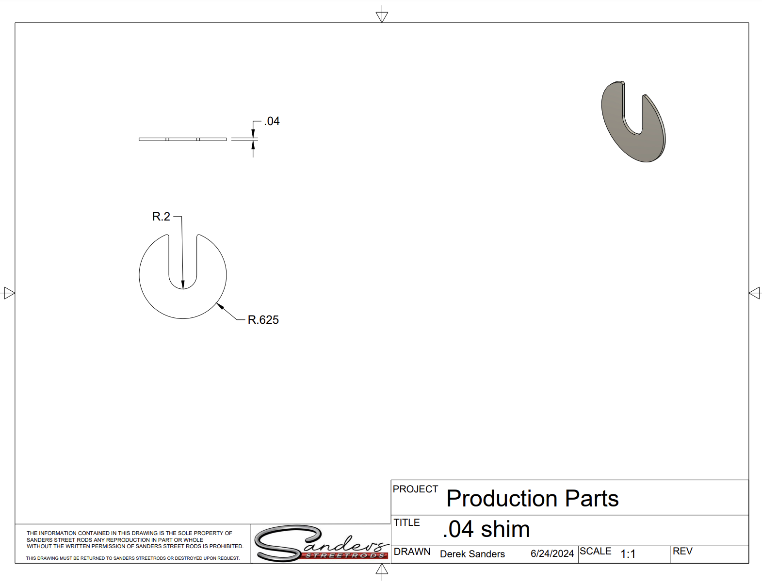 - 1/32 (.04") Aluminum shim made from high quality 6061 Aluminum.