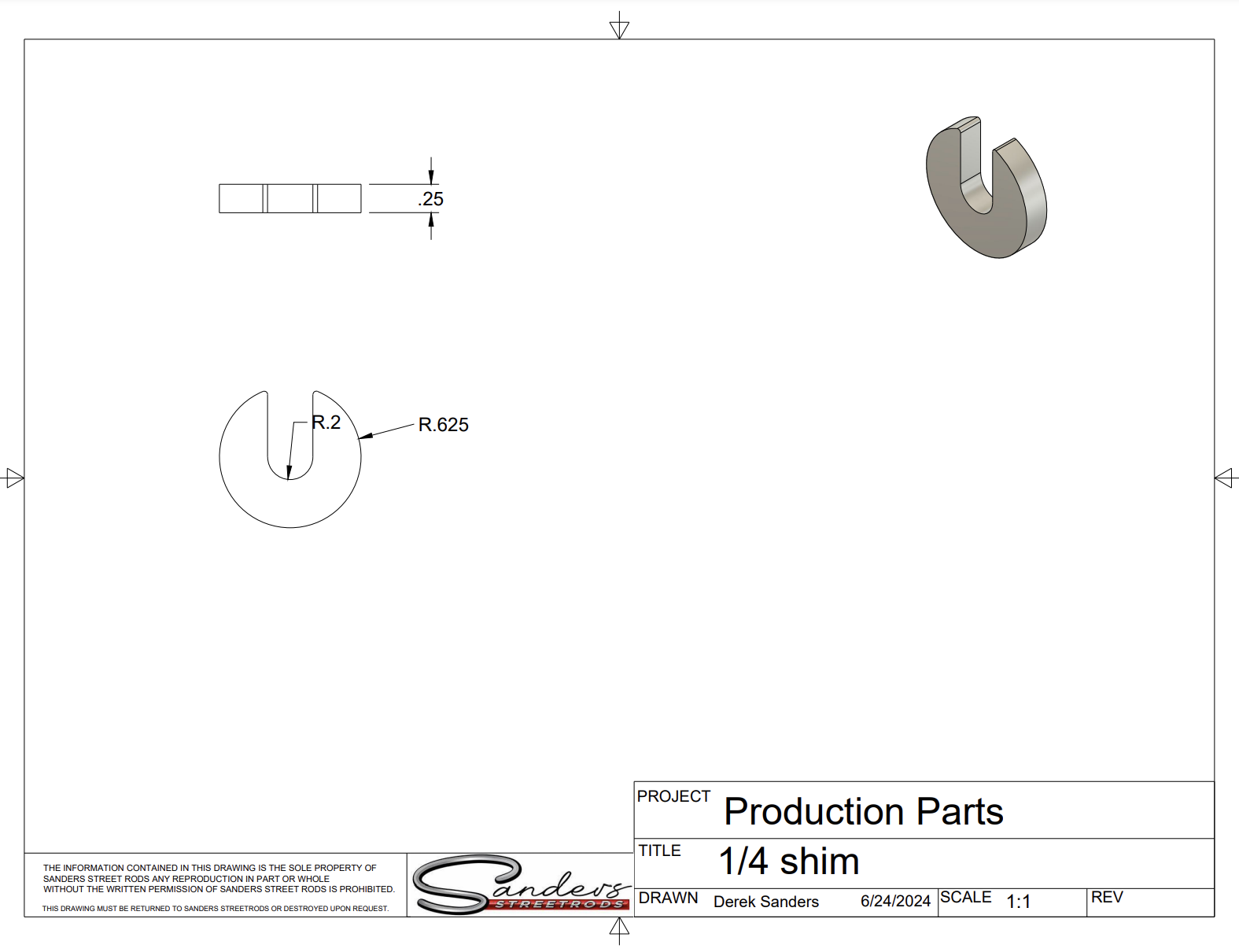- 1.25" O.D and .375” wide slot to the center of the shim make these the perfect solution for alignment, body shims and fabrication throughout your build.