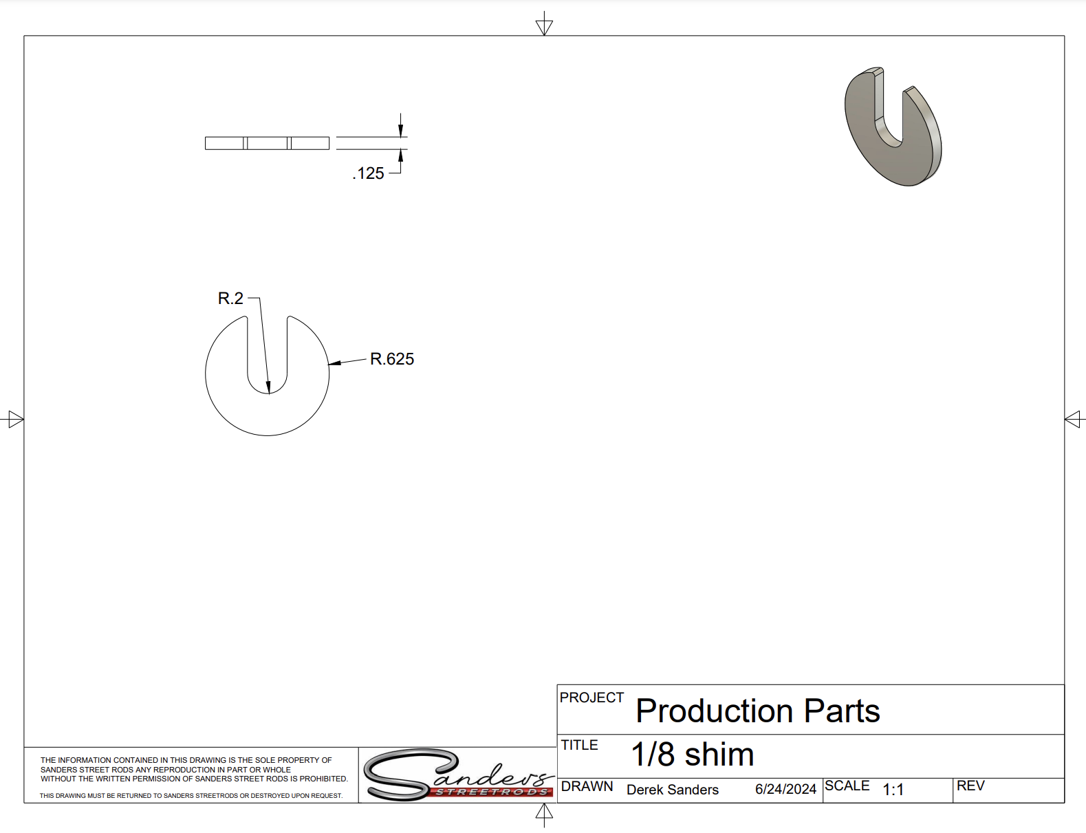 - 1.25" O.D and .375” wide slot to the center of the shim make these the perfect solution for alignment, body shims and fabrication throughout your build.
