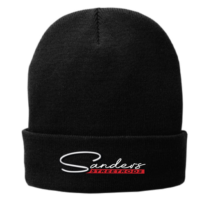 Black Beanie Hat with Sanders Street Rods Logo on Front.