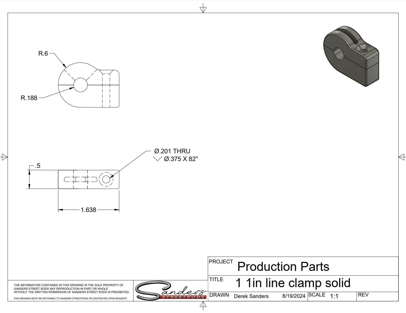 Not ready to invest in a drill jig? Send us an email to Josh@sandersstreetrods.com for pre-drilled line clamp options.