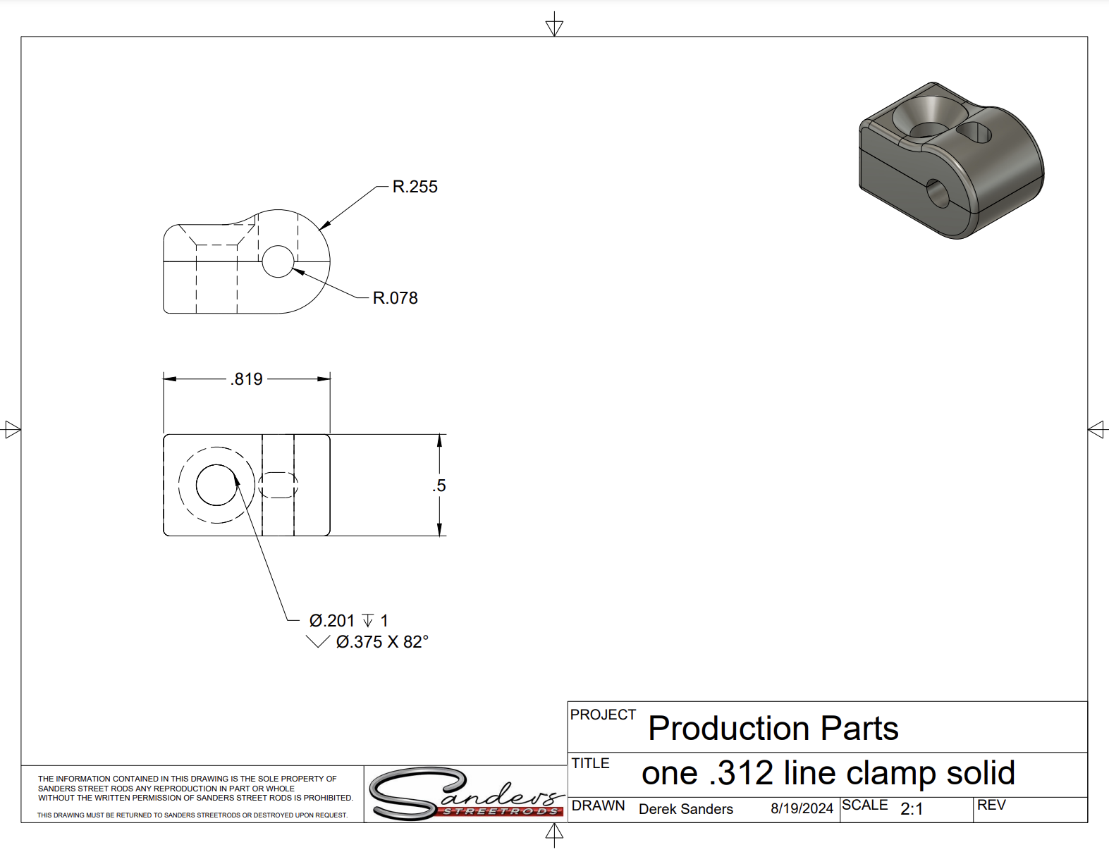 Not ready to invest in a drill jig? Send us an email to Josh@sandersstreetrods.com for pre-drilled line clamp options.