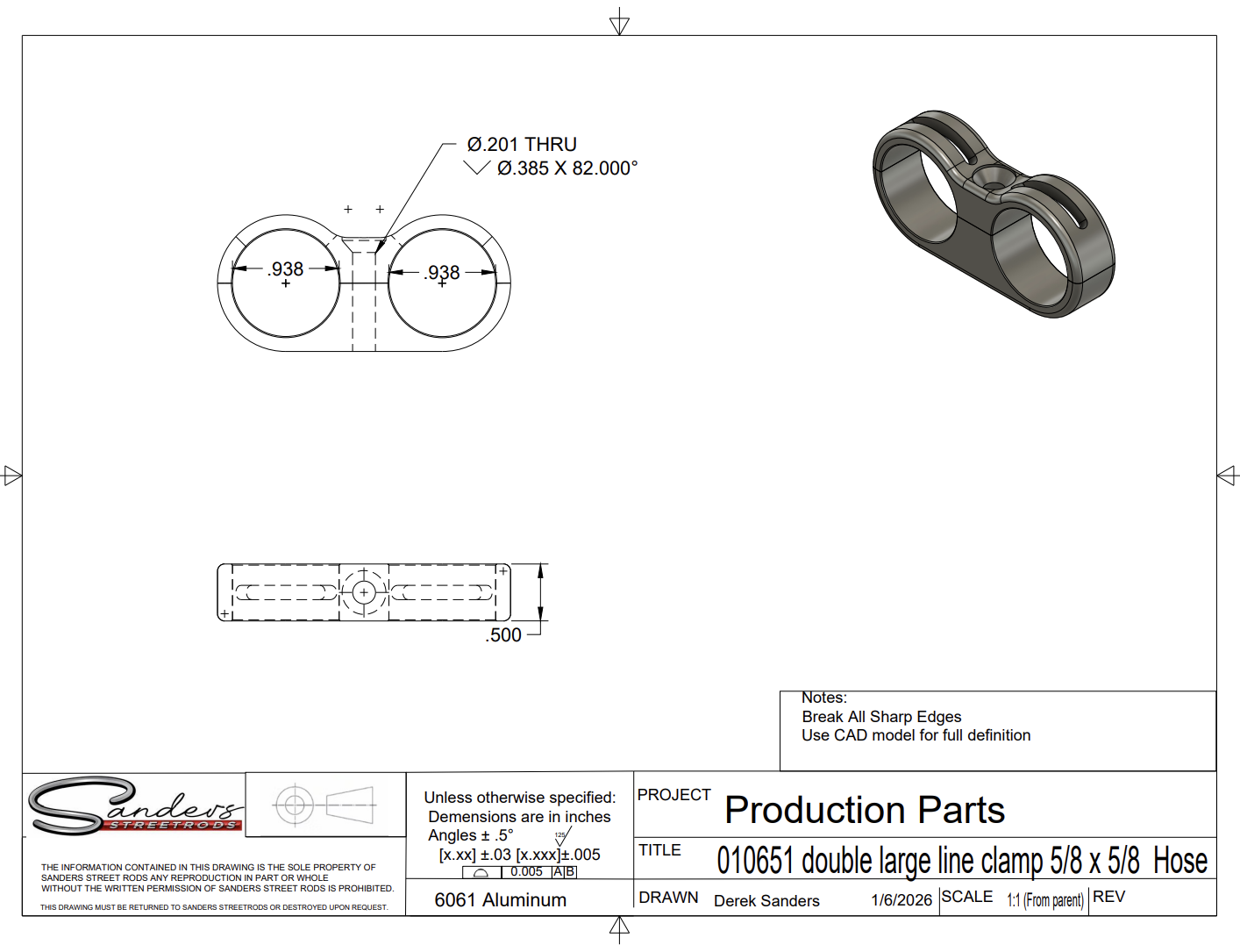 This is a solution to a problem we have run into in my hot rod shop for years and now we are offering it to you! If this doesn't fit your needs check out our U-Drill Universal line clamps and drill jigs for complete customization of you line clamps. Stainless 10-32 bolt and nylock included.